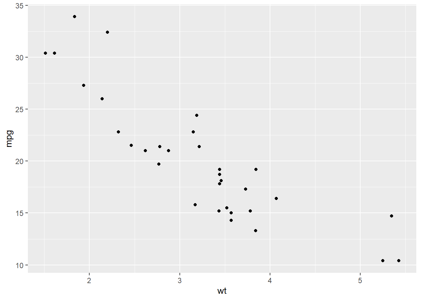 ggplot(mtcars, aes(wt, mpg)) + geom_point()